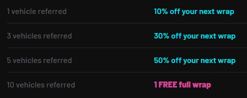 For every vehicle they commit to wrap, you earn 10% off your next fleet wrap order. The more vehicles they wrap, the more you save.