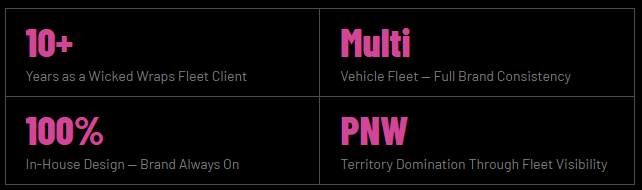 Every day your vans hit the road unbranded, you’re handing free advertising to your competitors. A Wicked Wraps fleet wrap is owned advertising — one investment that works 24 hours a day, 7 days a week, for years.